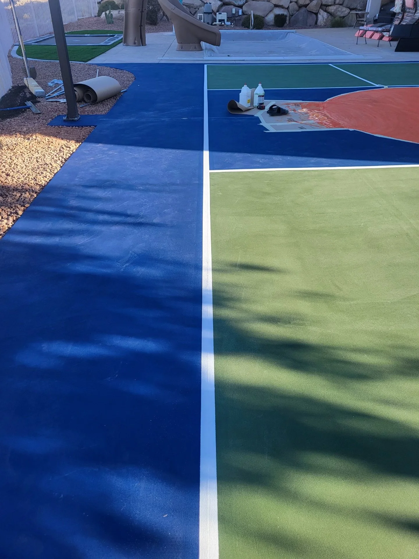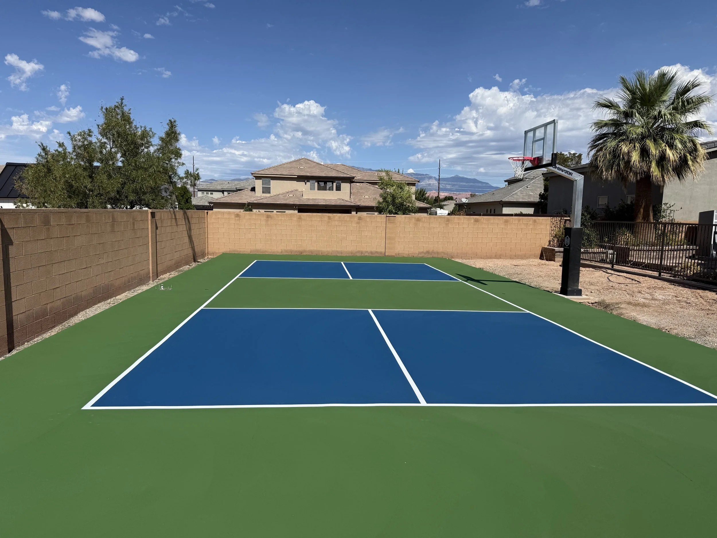 Custom court colors and regulation striping are professionally applied.